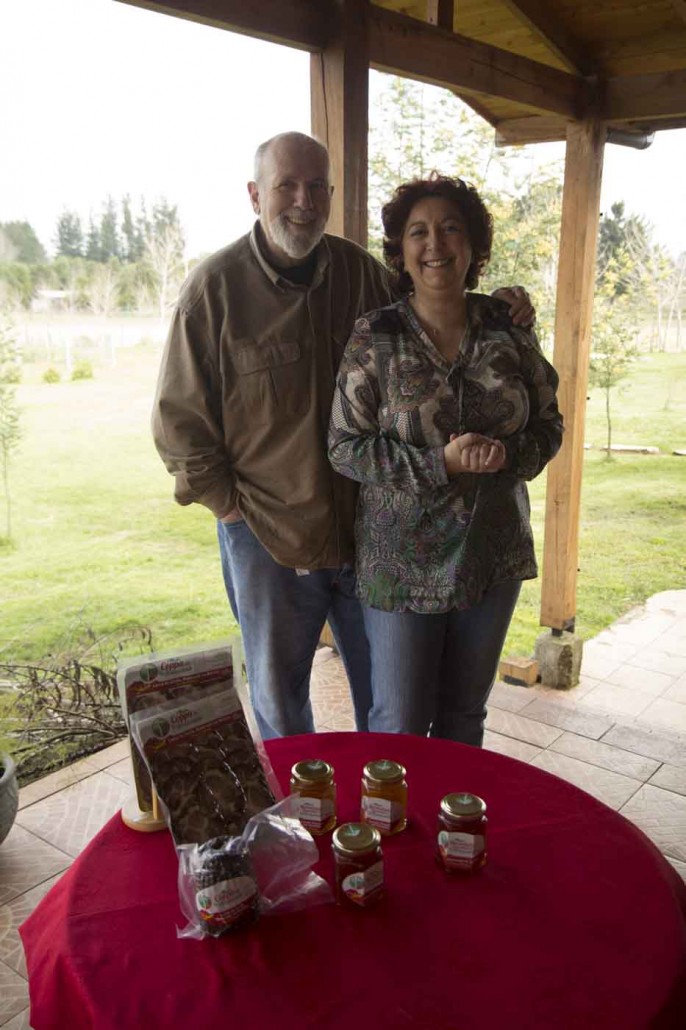 Me llamo Angela Villalobos Millar. Nací en Purranque, luego viví en Lautaro. Entré a la universidad y luego trabajé en una empresa de transporte naviero; me dediqué a eso durante 35 años al transporte internacional. Trabajé 12 años en Perú donde conocí a mi esposo, me teñí de esa cultura gastronómica. Nunca fui de cocinar pero mi marido, sí. Como hobby comenzamos a preparar jamón; vimos una oportunidad de negocio en eso y hemos desarrollado uno en particular: Coppa de la Araucanía – jamón del cuello del cerdo como en Pastene. Con los sabores de la Araucanía, nuestra marca es EcoAbet.