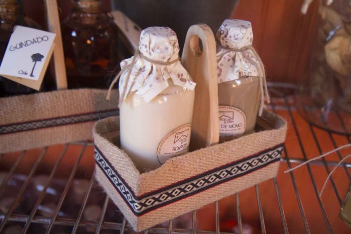 Soy María Erna Aguayo Rivas. Nací y estudié en Los Ángeles. Me vine a vivir a la novena región cuando mi primer hijo quedó en la universidad. Tengo 4 hijos. Primero viví en Cherquenco, donde instalé mi fábrica de mermeladas; con el tiempo fui derivando al manjar. De niña observé que en mi casa se hacía todo – recuerdo las barras de manjar y calugas para llevar al colegio; desde ahí proviene este conocimiento. Hace dos años que me trasladé a Santa Ema, entre Lautaro y Curacautín. Lo primero fue instalar mi fábrica que cuenta con tres resoluciones sanitarias, confituras, productos lácteos y conservas. Hago todo lo vinculado a mis productos -bajo la marca registrada Productos Volcán Llaima.